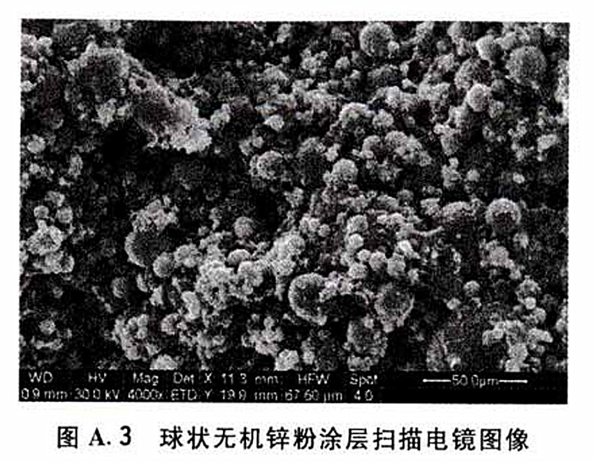 圖A.3  球狀無(wú)機(jī)鋅粉涂層掃描電鏡圖像