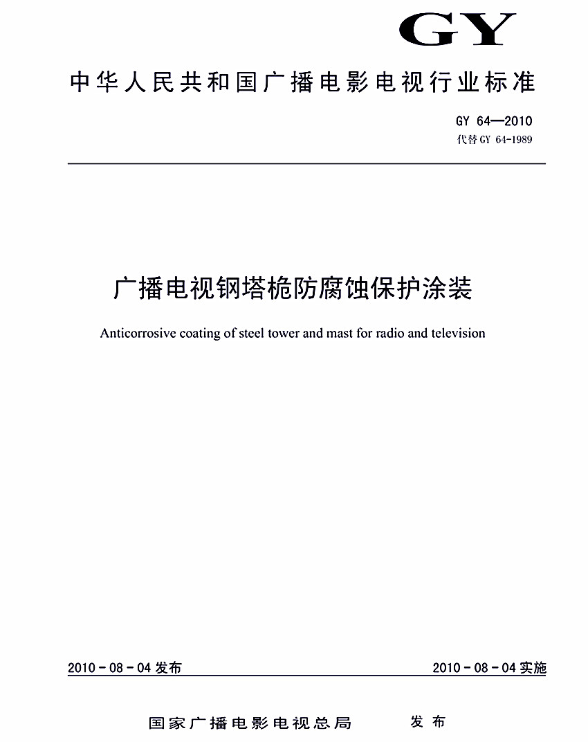 廣播電視塔鋼結構防腐漆配套是小編參考GY 64-2010《廣播電視鋼塔桅防腐蝕保護涂裝》整理出來的,大家可以放心參考。更過防腐涂料配套、施工工藝和執行標準等信息,可以查看鑫鼎言防腐涂料網站。