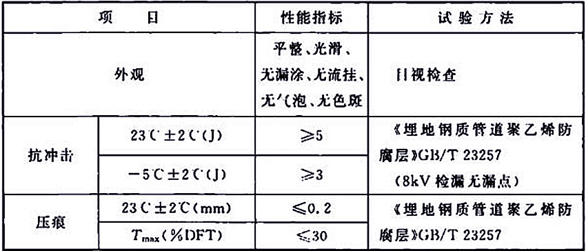2.2 液體環氧補口防腐層的性能應滿足表2.2-1的要求,液體聚氨酯補口防腐層的性能應滿足表2.2-2的要求。