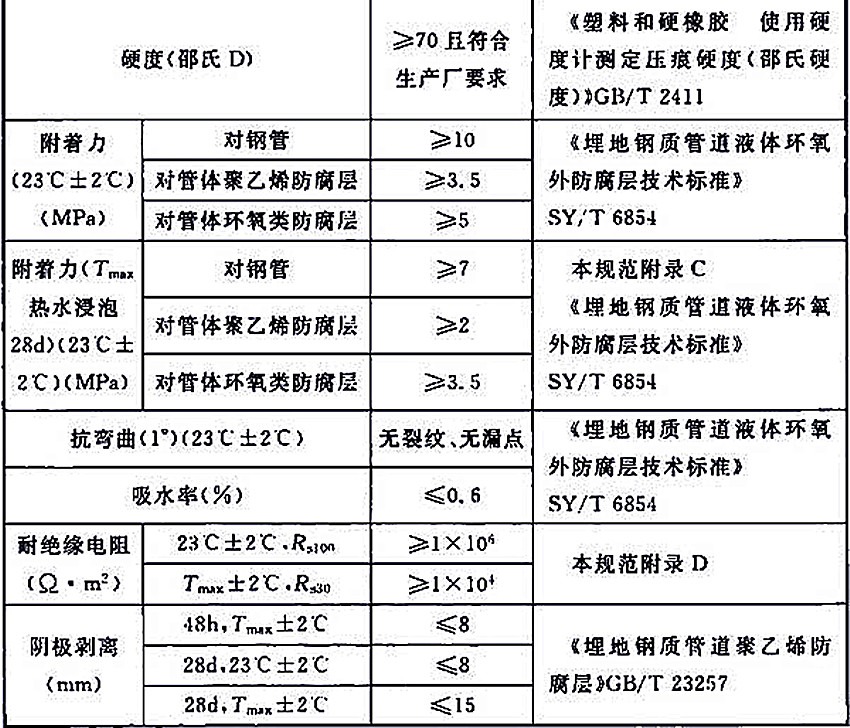 2 防腐層在常溫條件至少應放置7d,達到完全固化后方可進行性能測試。