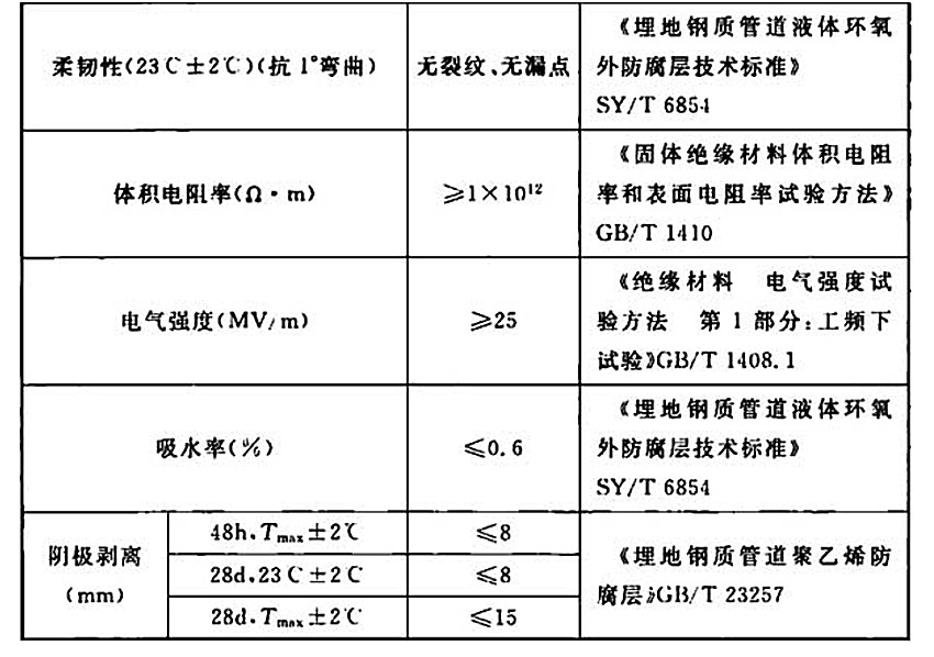表2.2-1 液體環氧補口防腐層性能指標(2A)