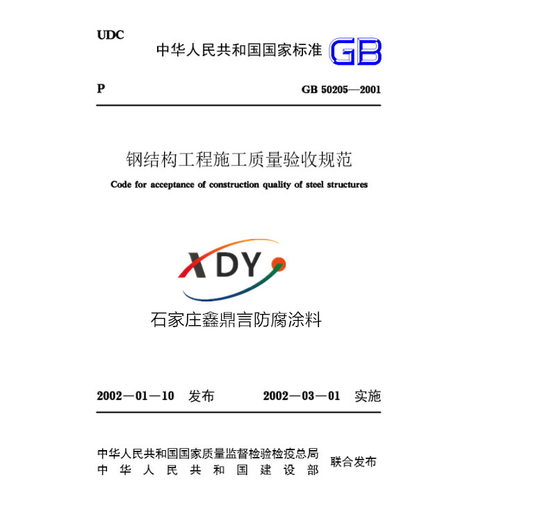 本文介紹了GB50205-2001鋼結(jié)構(gòu)工程施工質(zhì)量驗(yàn)收規(guī)范對于鋼結(jié)構(gòu)防腐涂料涂裝的表面處理要求,各類防銹漆、底漆對應(yīng)的最低除銹等級及防腐涂料的涂層厚度、驗(yàn)收標(biāo)準(zhǔn)。專業(yè)的XDY鋼結(jié)構(gòu)防腐漆生產(chǎn)廠家石家莊博凱防腐涂料廠為您提供質(zhì)量優(yōu)異,價格合理的XDY鋼結(jié)構(gòu)防腐涂料全系列產(chǎn)品。